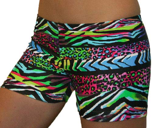 Gem Gear brand Neon Wild Africa print Spandex Volleyball Compression Shorts are made with an 80% nylon poly / 20% lycra spandex blend fabric, and are as durable as they are comfortable! This fabric is used for Performance Activewear and offers a 4-way stretch, and Moisture Wicking to ensure maximum comfort and durability. Wild Africa Jungle Animal Print Spanx Juniors Spandex Shorts also have a comfortable Elastic Waist. Made in the USA.