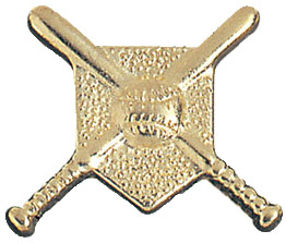 This Chenille looking Gold Varsity Softball / Baseball Pin is perfect to wear on Jackets, Hats, Backpacks, etc. . . or as collector's Item. These Baseball / Softball Crossed Bats Gold Varsity Pins make a great gift for individuals or the entire team.