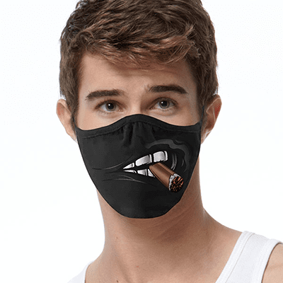 Fun & Humorous Face Masks with Lit Cigar & Big Teeth Design are very comfortable & breathable face coverings perfect for most all head sizes and shapes. These face masks are Lightweight, Breathable, Moisture Wicking and offer a Super-Soft & Comfortable Fit for all day wear. Printed image has small pin-holes throughout design to aid in breathability. Face Masks are available in Your Choice of 3 Colors as well as Fixed Ear Loop or Adjustable Ear Loop Design.