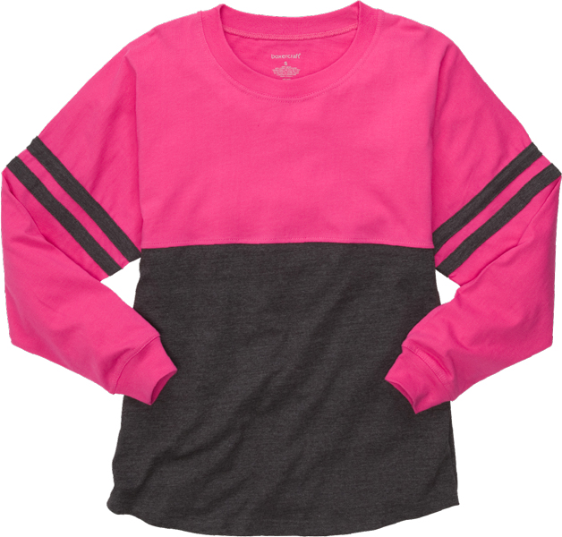 Stylish Boxercraft Brand Pink Fuchsia & Charcoal Grey Color-Block Oversized Athletic Pom Pom Game Day Jersey Shirts feature premium cotton for softness & comfort, and the option of VOLLEYBALL lettering printed across the back shoulder. With a comfortable crew neckline and over-sized athletic shoulder, these long sleeve Game Day Jersey Pullover Tees will become your favorite sweatshirt.