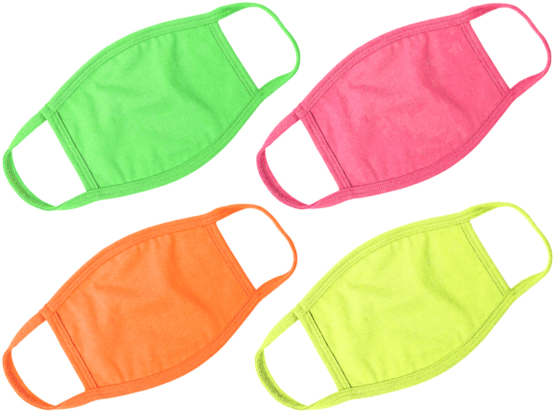 Neon Color Face Masks are soft 65% Polyester / 35% Cotton Jersey Material.