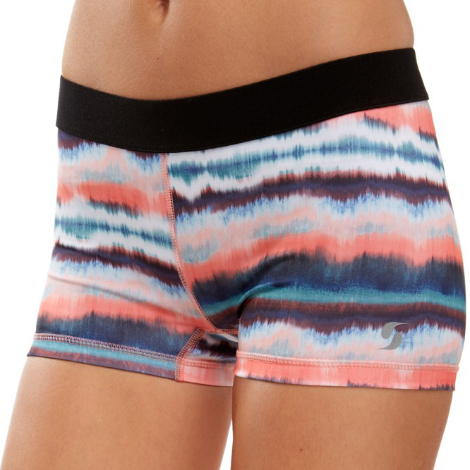 SOFFE DRI SHORTS... These super-sleek Juniors Fit Soffe Dri Spandex Compression Shorts in Multi-Color Tie-Dye Watercolor Paint Pattern Print are made with Moisture Wicking fabric technology for maximum performance even during the toughest conditions. These ultra-soft low rise performance athletic shorts allow for tremendous comfort and ease of movement.